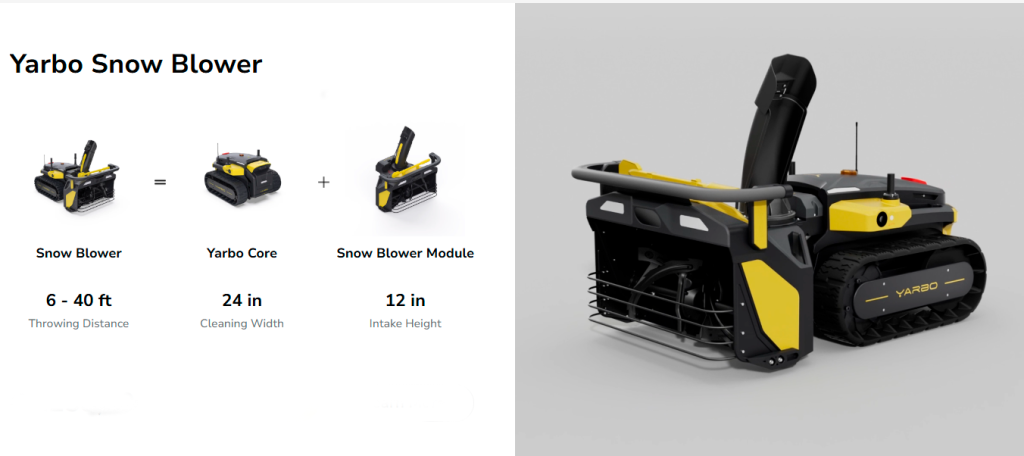 • 61cm lumilinkoleveys ja 30cm imukorkeudella Yarbo voi puhdistaa 2,5cm lunta 6000 neliömetrin alueelta.